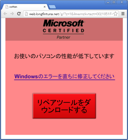 最近、Chromeを起動したまましばらく放置しておくと、たまにどうみても詐欺っぽいメッセージ