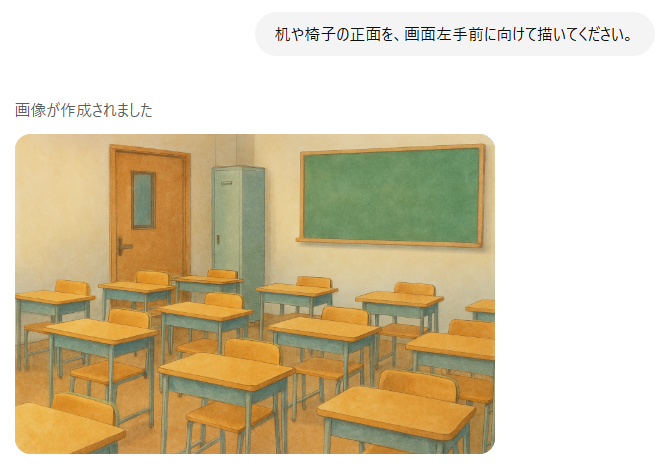 2025年04月15日 ChatGPTに色を塗らせたら… 近頃ChatGPTが流行っているので私も無料版を使ってみた。に水彩画風に色を塗ってもらったところ…こうなった色は中々良いが、なんと机の向きが逆になっている。寧ろ凄いよ…AIの間違いはやっぱ人間のしくじりとは色々違う。机の向きを指定したら方向は揃えられたが、そもそもの元の絵とはだいぶかけ離れているので、あまりカッチリした処理は期待しないで、むしろ人間がAIの後に加筆するような使い方の方が良いのかも。因みに「鞄を追加してくれ」と言うと、まぁまぁ対応してくれる。ちなみにChatGPT君、先日Pythonのコーディングを頼んだ時は、できました!こんな機能も付け加えられますよ?どうします?ああしましょうか?こうしましょうかと提案してきてノリノリだったんだけれど、お絵かきの時は静か…。やはりコンピュータだけあってプログラミングの方が好きなのか。頭がいい人のChatGPT&Copilotの使い方橋本大也かんき出版2024-03-21